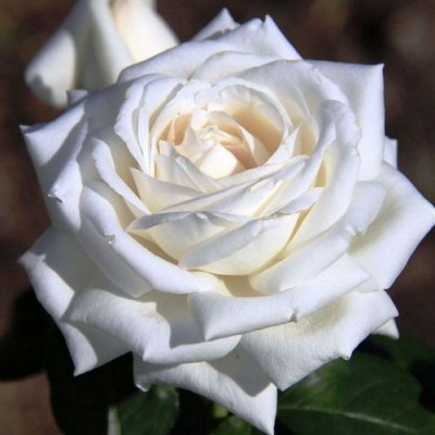 Крупные густомахровые цветки достигают в диаметре 12 см и окрашены в снежно-белый цвет. Ближе к центру можно заметить кремовые оттенки, которые подчеркивают слегка заостренную форму лепестков. На стеблях обычно появляется не более одного соцветия, а цветки обладают тонким и едва уловимым ароматом. Количество лепестков достигает 55, а бутоны отличаются плотностью.